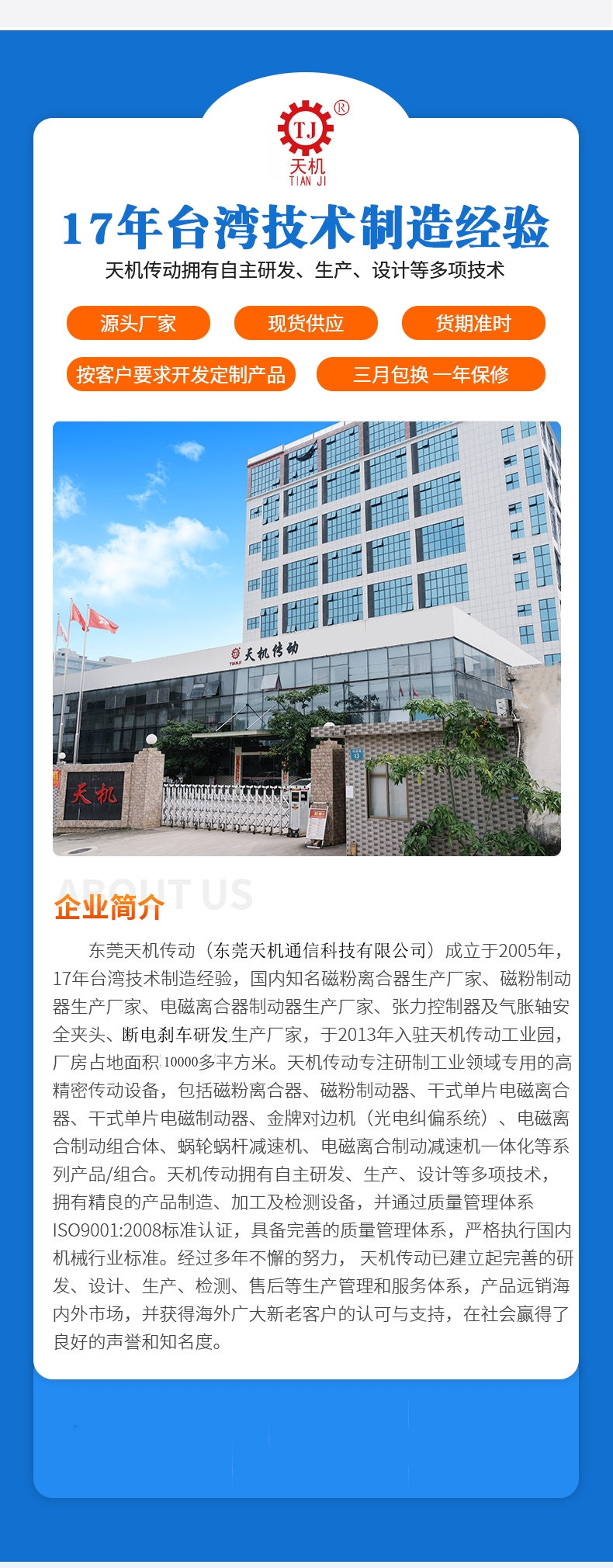 剎車器也稱失電制動器,是由磁軛、勵磁線圈、彈簧、制動盤、銜鐵、花鍵套、安裝鏍釘等組成,制動器安裝在設備的法蘭盤(或電動機)的后端伸,傳動軸與花鍵套與制動盤聯結。