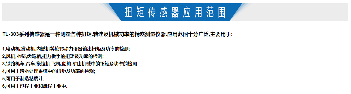 TL-303系列傳感器是一種測量各種扭矩,轉速及機械功率的精密測量儀器.應用范圍十分廣泛,主要用于:電動機,發(fā)動機,內燃機等旋轉動力設備輸出扭矩及功率的檢測;風機,水泵,齒輪箱,扭力板手的扭矩及功率的檢測;鐵路機車,汽車,拖拉機,飛機,船舶,礦山機械中的扭矩及功率的檢測等行業(yè)中。